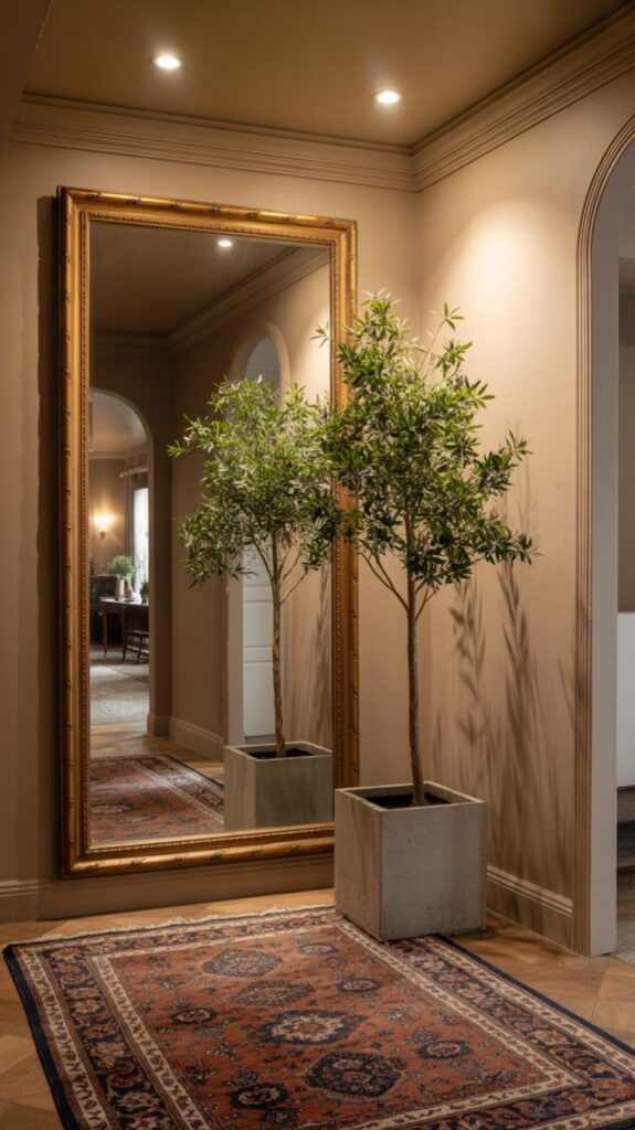 ✨ مرآة كبيرة بإطار أنيق قادرة على تغيير شكل المدخل بالكامل.