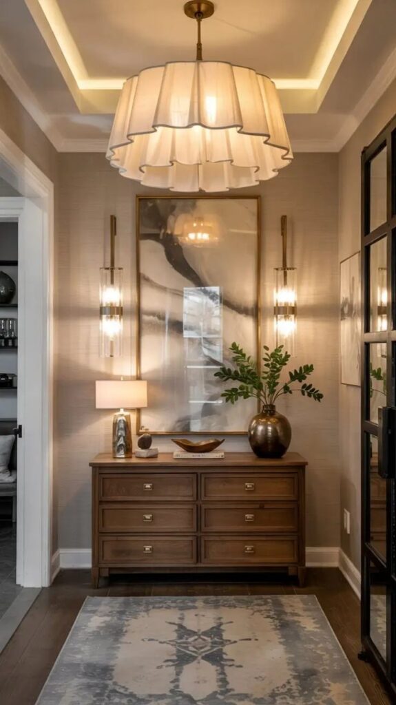 هذا النوع من الإضاءة يخلق أجواء فاخرة تشبه الفنادق الراقية، ويمنح المدخل طابعًا حميميًا.