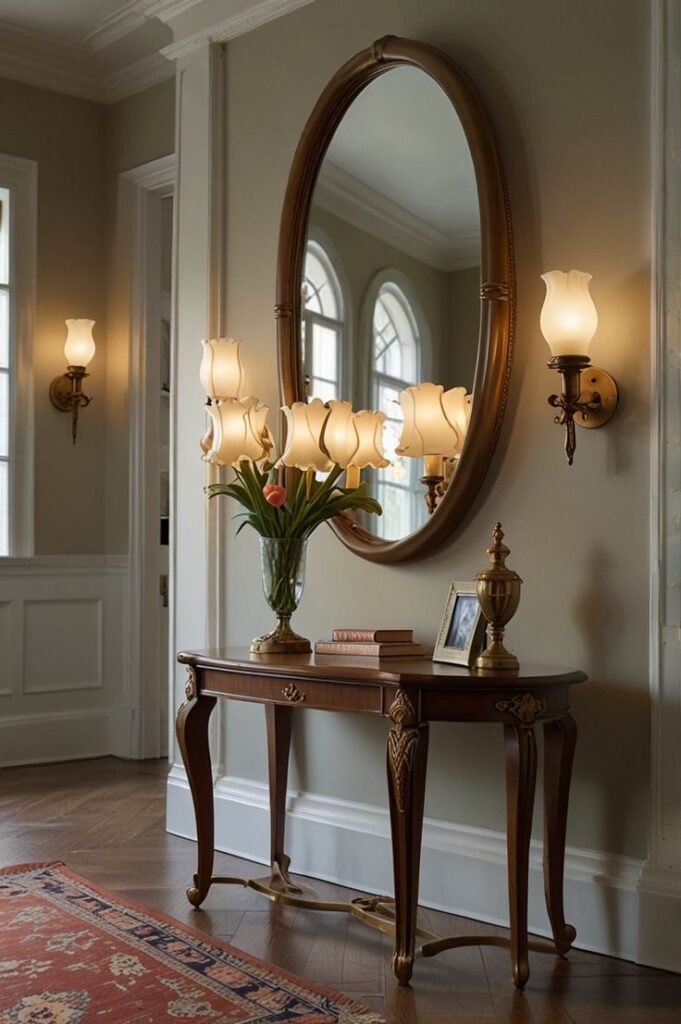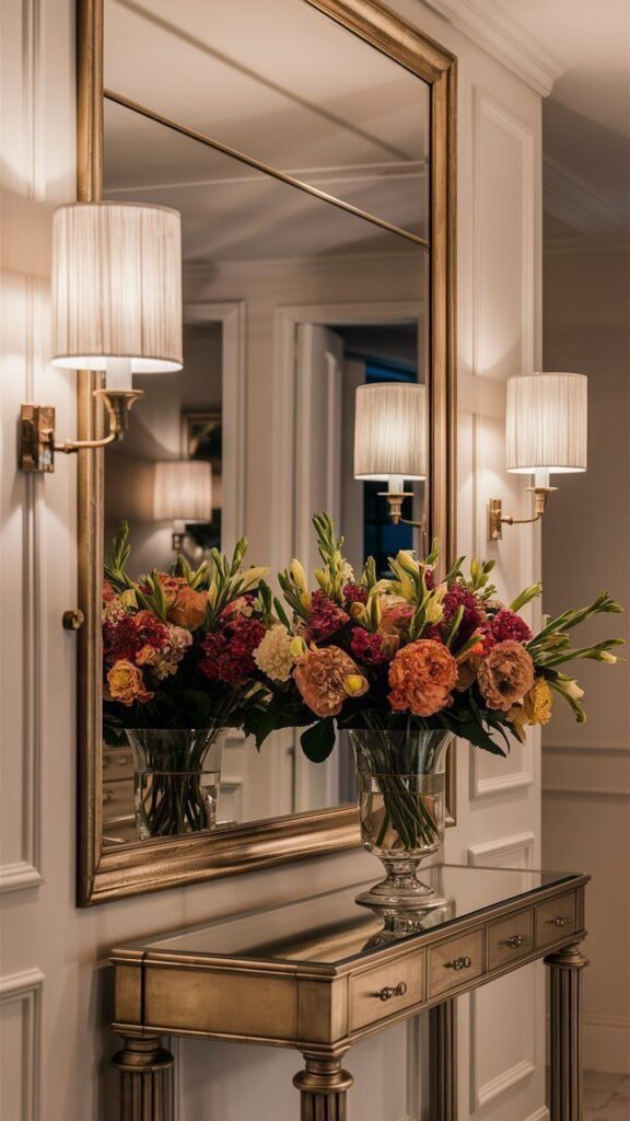- المرايا عنصر لا غنى عنه؛ فهي لا تساعدك فقط على التأكد من إطلالتك قبل الخروج، بل تعكس الضوء وتمنح إحساساً باتساع المكان.